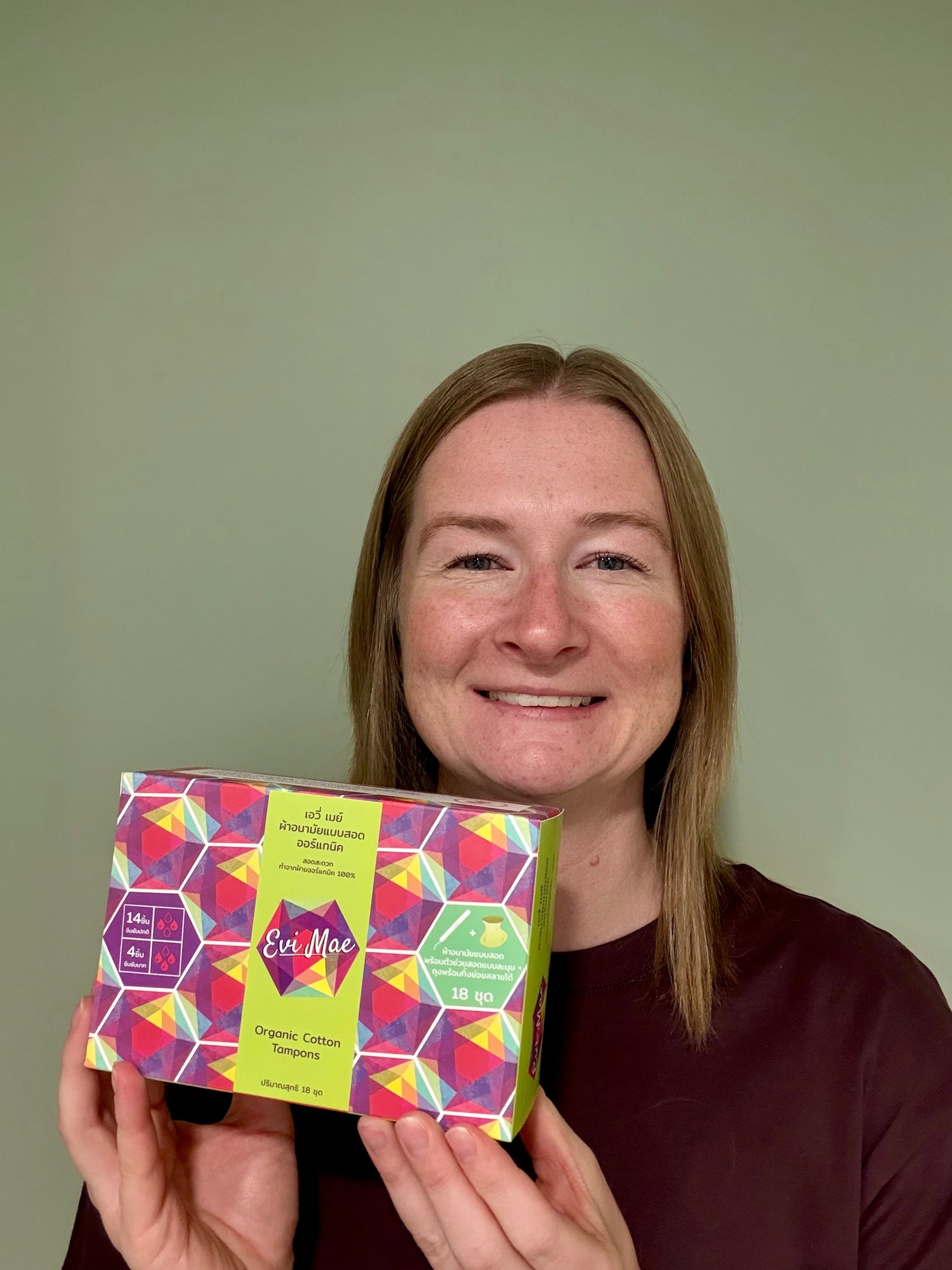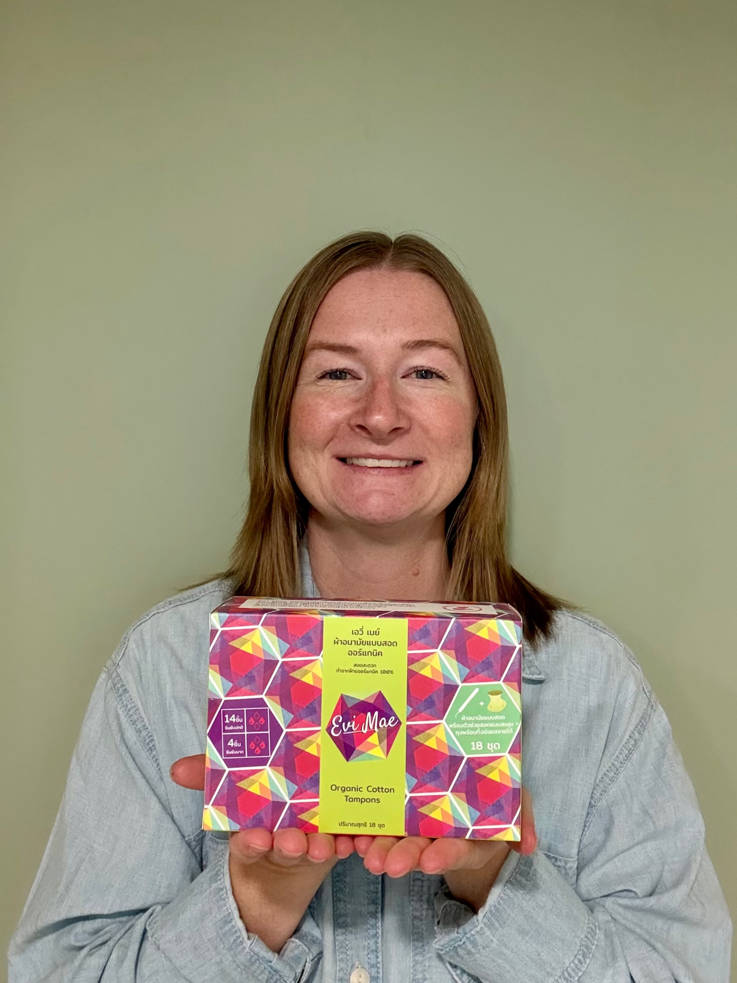 I’m an American, a wife, a mother of two, and the founder of Evi Mae—the first tampon brand designed specifically for women in Thailand.
